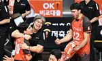 [OSEN=안산, 지형준 기자] 25일 오후 안산 상록수체육관에서 도드람 2024-2025 V리그 남자부 OK저축은행과 대한항공의 경기가 열렸다.7연패에 빠진 OK저축은행은 4승 18패 최하위 7위, 대한항공은 14승 8패 2위를 기록중이다.3세트 OK저축