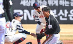 [OSEN=수원, 길준영 기자] 프로야구 KT 위즈 강백호(26)가 파울팁 타구에 맞아 교체됐다.강백호는 11일 수원 KT위즈파크에서 열린 ‘2025 신한은행 SOL Bank KBO리그’ 키움 히어로즈와의 경기에 1번 포수로 선발출장했다.KT가 0-1로