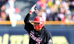 [OSEN=잠실, 이대선 기자] 20일 오후 서울 잠실야구장에서 2025 신한 SOL Bank KBO리그 두산 베어스와 KIA 타이거즈의 경기가 열렸다.두산은 잭로그, KIA는 네일을 선발 투수로 내세웠다.7회초 2사 1,3루에서 KIA 최형우의 중전 적시타 때 홈