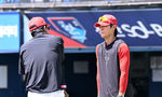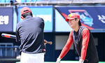 [OSEN=잠실, 이대선 기자] 20일 오후 서울 잠실야구장에서 2025 신한 SOL Bank KBO리그 두산 베어스와 KIA 타이거즈의 경기가 열렸다.두산은 잭로그, KIA는 네일을 선발 투수로 내세웠다.경기에 앞서 KIA 김규성이 홍세완 코치에게 지도를