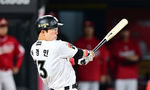 [OSEN=수원, 김성락 기자] 22일 오후 수원 KT위즈파크에서 ‘2025 신한 SOL Bank KBO리그’ KT 위즈와 SSG 랜더스의 경기가 열렸다.홈팀 KT는 오원석, 원정팀 SSG는 김광현을 선발로 내세웠다. 6회말 2사 3루 KT 허경민이 1타점 적시타를 날리