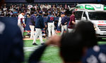 [OSEN=고척, 길준영 기자] 프로야구 롯데 자이언츠 전민재가 머리에 공을 맞아 병원으로 이송됐다. 키움 히어로즈 양지율은 헤드샷 퇴장을 당했다.전민재는 29일 서울 고척스카이돔에서 열린 ‘2025 신한은행 SOL Bank KBO리그’