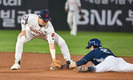 [OSEN=부산, 이석우 기자] 2일 부산 사직야구장에서 2025 신한 SOL 뱅크 KBO 리그 롯데 자이언츠와 NC 다이노스의 경기가 열렸다. 홈팀 롯데는 나균안, 방문팀 NC는 최성영이 선발 출전했다.NC 다이노스 박민우가 4회초 1사 1루 데이비슨