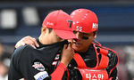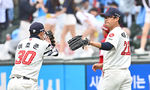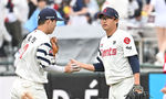 [OSEN=고척, 이대선 기자] 6일 오후 서울 고척스카이돔에서 2025 신한 SOL Bank KBO리그 키움 히어로즈와 KIA 타이거즈의 경기가 열렸다.키움은 조영건, 롯데는 김도현을 선발 투수로 내세웠다.3회말 수비를 마친 KIA 김도현과 한준수가