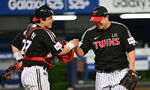 [OSEN=대구, 이석우 기자] 10일 대구삼성라이온즈파크에서 2025 신한 SOL 뱅크 KBO 리그 삼성 라이온즈와 LG 트윈스의 더블헤더 2차전 경기가 열렸다. 홈팀 삼성은 레예스가, 방문팀 LG는 임찬규가 선발 출전했다. LG 트윈스 선수들이 삼
