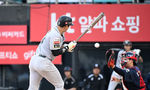 [OSEN=수원, 이대선 기자] 11일 오후 수원 KT위즈파크에서 2025 신한 SOL Bank KBO리그 KT 위즈와 롯데 자이언츠의 더블헤더 2차전 경기가 열렸다.KT는 오원석, 롯데는 이민석을 선발 투수로 내세웠다.3회초 2사에서 롯데 정훈이 좌전 안타