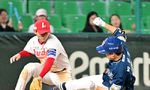 [OSEN=대전, 김성락 기자] 13일 대전 한화생명볼파크에서 ‘2025 신한 SOL Bank KBO리그’ 한화 이글스와 두산 베어스의 경기가 열렸다.이날 한화는 류현진, 두산은 최원준을 선발로 내세웠다.5회초 1사 1루 두산 김인태가 내야안타를