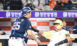 [OSEN=대전, 김성락 기자] 13일 대전 한화생명볼파크에서 ‘2025 신한 SOL Bank KBO리그’ 한화 이글스와 두산 베어스의 경기가 열렸다.이날 한화는 류현진, 두산은 최원준을 선발로 내세웠다.5회초 1사 1루 두산 김인태의 내야안타 때