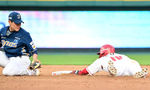 [OSEN=대전, 김성락 기자] 13일 대전 한화생명볼파크에서 ‘2025 신한 SOL Bank KBO리그’ 한화 이글스와 두산 베어스의 경기가 열렸다.이날 한화는 류현진, 두산은 최원준을 선발로 내세웠다.3회말 1사 1루 한화 플로리얼의 헛스윙 삼
