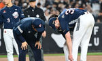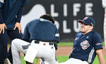 [OSEN=대전, 김성락 기자] 14일 대전 한화생명볼파크에서 ‘2025 신한 SOL Bank KBO리그’ 한화 이글스와 두산 베어스의 경기가 열렸다.이날 한화는 문동주, 두산은 잭로그를 선발로 내세웠다.4회초 1사 2루 두산 강승호가 몸에 볼을 맞