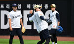 [OSEN=대전, 김성락 기자] 14일 대전 한화생명볼파크에서 ‘2025 신한 SOL Bank KBO리그’ 한화 이글스와 두산 베어스의 경기가 열렸다.이날 한화는 문동주, 두산은 잭로그를 선발로 내세웠다.경기 시작에 앞서 한화 류현진이 훈련을