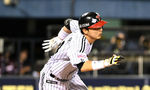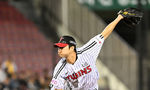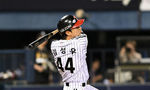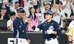 [OSEN=대전, 김성락 기자] 14일 대전 한화생명볼파크에서 ‘2025 신한 SOL Bank KBO리그’ 한화 이글스와 두산 베어스의 경기가 열렸다.이날 한화는 문동주, 두산은 잭로그를 선발로 내세웠다.8회초 1사 1루 두산 오명진이 1타점 적시 3