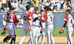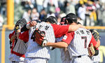 [OSEN=잠실, 민경훈 기자] 18일 오후 서울 잠실야구장에서 2025 신한 SOL Bank KBO리그 LG 트윈스와 KT 위즈의 경기가 열렸다.이 경기에서 LG는 KT에 5-1로 승리했다. LG는 리그에서 가장 먼저 30승(16패) 고지에 올랐다. 10승, 20승, 30승 모두