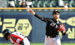[OSEN=잠실, 민경훈 기자] 18일 오후 서울 잠실야구장에서 2025 신한 SOL Bank KBO리그 LG 트윈스와 KT 위즈의 경기가 열렸다.LG는 치리노스, KT는 헤이수스를 선발 투수로 내세웠다.7회말 1사 LG 박해민의 2루수 앞 병살타때 KT 유격수 권동