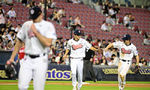 [OSEN=수원, 조은정 기자]20일 오후 수원 KT위즈파크에서 2025 신한 SOL Bank KBO리그 KT 위즈와 KIA 타이거즈의 경기가 열렸다.이날 홈팀 KT는 조이현을, 방문팀 KIA는 윤영철을 선발투수로 내세웠다.5회말 1사 1루 KT 장성우가 앞서가는 좌