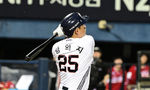 [OSEN=수원, 조은정 기자]20일 오후 수원 KT위즈파크에서 2025 신한 SOL Bank KBO리그 KT 위즈와 KIA 타이거즈의 경기가 열렸다.이날 홈팀 KT는 조이현을, 방문팀 KIA는 윤영철을 선발투수로 내세웠다.5회말 2사 2루 KT 강백호가 우익선상으