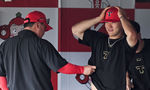 [OSEN=수원, 조은정 기자]20일 오후 수원 KT위즈파크에서 2025 신한 SOL Bank KBO리그 KT 위즈와 KIA 타이거즈의 경기가 열린다.이날 홈팀 KT는 조이현을, 방문팀 KIA는 윤영철을 선발투수로 내세웠다.KIA 이범호 감독이 김도영의 옷을 들추
