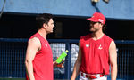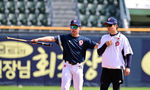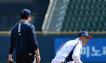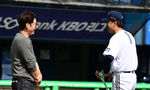[OSEN=잠실, 지형준 기자] 20일 오후 서울 잠실구장에서 2025 신한 SOL Bank KBO리그 두산 베어스와 SSG 랜더스의 경기가 열렸다.이날 두산은 잭로그, SSG는 전영준을 선발로 내세웠다.경기에 앞서 두산 이승엽 감독, 박석민 코치가 훈련