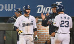[OSEN=울산, 이석우 기자] 22일 울산 문수야구장에서 2025 신한 SOL 뱅크 KBO 리그 NC 다이노스와 한화 이글스의 경기가 열렸다. 홈팀 NC는 김녹원이, 방문팀 한화는 폰세가 선발로 나섰다.NC 다이노스 코치들이 6회말 2사 2,3루 김휘집의