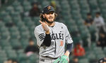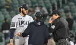 [OSEN=울산, 이석우 기자] 22일 울산 문수야구장에서 2025 신한 SOL 뱅크 KBO 리그 NC 다이노스와 한화 이글스의 경기가 열렸다. 홈팀 NC는 김녹원이, 방문팀 한화는 폰세가 선발로 나섰다.한화 이글스 폰세가 3회말 무사 1루 NC 다이노