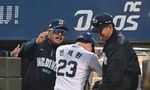 [OSEN=울산, 이석우 기자] 22일 울산 문수야구장에서 2025 신한 SOL 뱅크 KBO 리그 NC 다이노스와 한화 이글스의 경기가 열렸다. 홈팀 NC는 김녹원이, 방문팀 한화는 폰세가 선발로 나섰다.NC 다이노스 박세혁이 2회말 1사 2루 우익수 앞 1