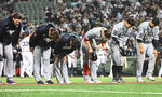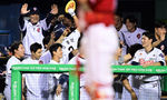 [OSEN=울산, 이석우 기자] 22일 울산 문수야구장에서 2025 신한 SOL 뱅크 KBO 리그 NC 다이노스와 한화 이글스의 경기가 열렸다. 홈팀 NC는 김녹원이, 방문팀 한화는 폰세가 선발로 나섰다.한화 이글스 선수들이 NC 다이노스에 3-4으로