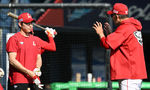 [OSEN=잠실, 조은정 기자]22일 오후 서울 잠실구장에서 2025 신한 SOL Bank KBO리그 두산 베어스와 SSG 랜더스의 경기가 열린다.이날 두산은 홍민규를, SSG은 김광현을 선발로 내세웠다.SSG 박성한이 이숭용 감독의 조언을 듣고 있다. 2025.0