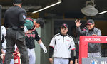 [OSEN=인천, 김성락 기자] 23일 오후 인천 미추홀구 SSG랜더스필드에서 ‘2025 신한 SOL Bank KBO리그’ SSG 랜더스와 LG 트윈스의 경기가 열렸다.이날 홈팀 SSG는 화이트, LG는 손주영을 선발로 내세웠다.1회초 1사 LG 염경엽 감독, 포수 LG