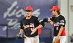 [OSEN=대구, 이석우 기자] 23일 대구삼성라이온즈파크에서 2025 신한 SOL 뱅크 KBO 리그 삼성 라이온즈와 KIA 타이거즈의 경기가 열렸다. 홈팀 삼성은 황동재가, 방문팀 KIA는 네일이 선발 출전했다. KIA 타이거즈 오선우와 선수들이 7회