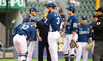 [OSEN=잠실, 조은정 기자]24일 오후 서울 잠실구장에서 2025 신한 SOL Bank KBO리그 두산 베어스와 NC 다이노스의 경기가 열렸다.두산은 최원준을 NC는 라일리를 선발 투수로 내세웠다.2회말 2사 만루가 되자 코칭태프가 마운드에 올라 N