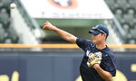 [OSEN=잠실, 조은정 기자]24일 오후 서울 잠실구장에서 2025 신한 SOL Bank KBO리그 두산 베어스와 NC 다이노스의 경기가 열린다.두산은 최원준을 NC는 라일리를 선발 투수로 내세웠다.NC 박민우가 몸을 풀고 있다. 2025.05.24 /cej@osen.co.kr