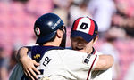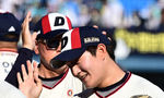 [OSEN=잠실, 지형준 기자] 25일 서울 잠실구장에서 2025 신한 SOL Bank KBO리그 두산 베어스와 NC 다이노스의 경기가 열렸다.이날 두산이 5-3 승리를 거두며 NC에 시즌 첫 승을 거뒀다.경기를 마치고 두산 김기연, 김택연이 승리를 기뻐하