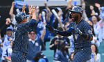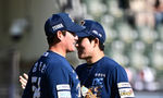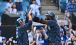 [OSEN=인천, 조은정 기자]25일 인천 SSG랜더스필드에서 2025 신한 SOL Bank KBO리그 SSG 랜더스와 LG 트윈스의 경기가 열렸다.SSG은 전영준을 LG는 송승기를 선발투수로 내세웠다.9회말 1사 SSG 신범수가 솔로포를 날린 뒤 더그아웃에서 축하