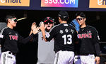 [OSEN=인천, 조은정 기자]25일 인천 SSG랜더스필드에서 2025 신한 SOL Bank KBO리그 SSG 랜더스와 LG 트윈스의 경기가 열렸다.SSG은 전영준을 LG는 송승기를 선발투수로 내세웠다.8회초 LG 선두타자 이주헌이 솔로포를 날린 뒤 더그아웃에