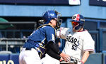 [OSEN=잠실, 지형준 기자] 25일 서울 잠실구장에서 2025 신한 SOL Bank KBO리그 두산 베어스와 NC 다이노스의 경기가 열렸다.이날 두산은 잭로그, 콜어빈, NC는 최성용을 선발로 내세웠다.5회말 1사 1,2루에서 NC 안중열이 두산 김재환의