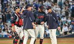 [OSEN=잠실, 박준형 기자] 27일 오후 서울 잠실구장에서 ‘2025 신한 SOL BANK KBO리그’ LG 트윈스와 한화 이글스의 경기가 진행됐다.이날 경기에서 LG은 임찬규를 한화는 황준서를 선발투수로 내세웠다.5회말 LG 염경엽 감독이 선수들
