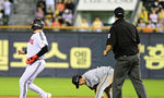 [OSEN=잠실, 지형준 기자] 28일 오후 서울 잠실구장에서 ‘2025 신한 SOL Bank KBO리그’ LG 트윈스와 한화 이글스의 경기가 열렸다.이날 LG는 코엔 윈, 한화는 코디 폰세를 선발투수로 내세웠다.8회초 1사 1루에서 LG 박동원이 한화 하주