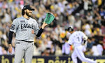 [OSEN=잠실, 지형준 기자] 28일 오후 서울 잠실구장에서 ‘2025 신한 SOL Bank KBO리그’ LG 트윈스와 한화 이글스의 경기가 열렸다.이날 LG는 코엔 윈, 한화는 코디 폰세를 선발투수로 내세웠다.6회말 2사 2루에서 한화 폰세가 LG 오스틴