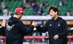 [OSEN=인천, 최규한 기자] 28일 인천 SSG랜더스필드에서 ‘2025 신한 SOL Bank KBO리그’ SSG 랜더스와 NC 다이노스의 경기가 열렸다.이날 경기는 홈팀 SSG가 13-5 대승을 거뒀다.경기를 마치고 SSG 한유섬과 이숭용 감독이 인사를 나누고 있