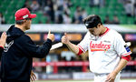 [OSEN=인천, 최규한 기자] 28일 인천 SSG랜더스필드에서 ‘2025 신한 SOL Bank KBO리그’ SSG 랜더스와 NC 다이노스의 경기가 열렸다.이날 경기는 홈팀 SSG가 13-5 대승을 거뒀다.경기를 마치고 SSG 승리투수 김광현과 이숭용 감독이 인사를