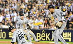 [OSEN=잠실, 지형준 기자] 29일 오후 서울 잠실구장에서 ‘2025 신한 SOL Bank KBO리그’ LG 트윈스와 한화 이글스의 경기가 열렸다.이날 LG는 손주영, 한화는 라이언 와이스를 선발투수로 내세웠다.7회말 무사 1루에서 한화 주현상이 LG