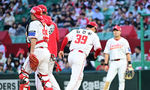 [OSEN=잠실, 지형준 기자] 29일 오후 서울 잠실구장에서 ‘2025 신한 SOL Bank KBO리그’ LG 트윈스와 한화 이글스의 경기가 열렸다.이날 LG는 손주영, 한화는 라이언 와이스를 선발투수로 내세웠다.1회말 한화 폰세가 경기를 지켜보고