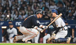[OSEN=창원, 이석우 기자] 30일 창원NC파크에서 2025 신한 SOL 뱅크 KBO 리그 NC 다이노스와 한화 이글스의 경기가 열렸다. 홈팀 NC는 라일리가, 방문팀 한화는 류현진이 선발 출전했다. 한화 이글스 최재훈이 8회초 NC 다이노스 이태훈