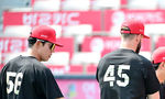 [OSEN=수원, 최규한 기자] 1일 수원 KT위즈파크에서 ‘2025 신한 SOL Bank KBO리그’ KT 위즈와 KIA 타이거즈의 경기가 열린다.홈팀 KT는 조이현, 방문팀 KIA는 애덤 올러를 선발로 내세운다.경기를 앞두고 KIA 오선우와 위즈덤이 웜업을 하