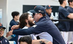 [OSEN=대전, 김성락 기자] 3일 오후 대전 한화생명볼파크에서 ‘2025 신한 SOL Bank KBO리그’ 한화 이글스와 KT 위즈의 경기가 열렸다.이날 홈팀 한화는 폰세, KT는 쿠에바스를 선발로 내세웠다.경기 시작에 앞서 한화 노시환이 손혁 단