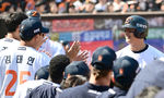 [OSEN=대전, 김성락 기자] 3일 오후 대전 한화생명볼파크에서 ‘2025 신한 SOL Bank KBO리그’ 한화 이글스와 KT 위즈의 경기가 열렸다.이날 홈팀 한화는 폰세, KT는 쿠에바스를 선발로 내세웠다.5회초 종료 후 한화 폰세, 최재훈이 더그