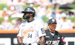 [OSEN=대전, 김성락 기자] 3일 오후 대전 한화생명볼파크에서 ‘2025 신한 SOL Bank KBO리그’ 한화 이글스와 KT 위즈의 경기가 열렸다.이날 홈팀 한화는 폰세, KT는 쿠에바스를 선발로 내세웠다.3회말 한화 선두타자 플로리얼이 안타를