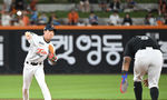 [OSEN=대전, 김성락 기자] 4일 오후 대전 한화생명볼파크에서 ‘2025 신한 SOL Bank KBO리그’ 한화 이글스와 KT 위즈의 경기가 열렸다.이날 홈팀 한화는 와이스, KT는 오원석을 선발로 내세웠다.8회초 무사 1루 한화 한승혁이 KT 허경민