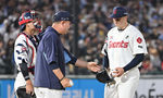 [OSEN=대전, 김성락 기자] 5일 오후 대전 한화생명볼파크에서 ‘2025 신한 SOL Bank KBO리그’ 한화 이글스와 KT 위즈의 경기가 열렸다.이날 홈팀 한화는 류현진, KT는 헤이수스를 선발로 내세웠다.4회초 2사 만루 한화 류현진이 몸의 이