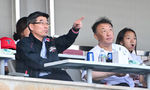 [OSEN=잠실, 박준형 기자] 5일 오후 서울 잠실야구장에서 2025 신한 SOL Bank KBO리그 두산 베어스와 KIA 타이거즈의 경기가 열렸다.이날 두산은 최원준을, KIA는 김도현을 선발 투수로 내세웠다.KIA 송호성 KIA 구단주와 최준영 KIA 대표이